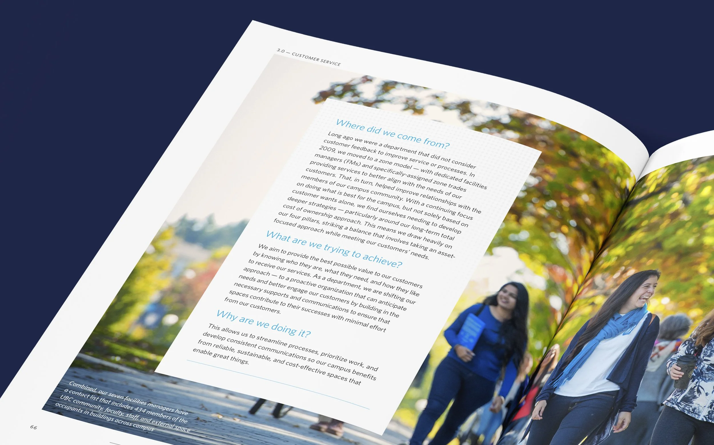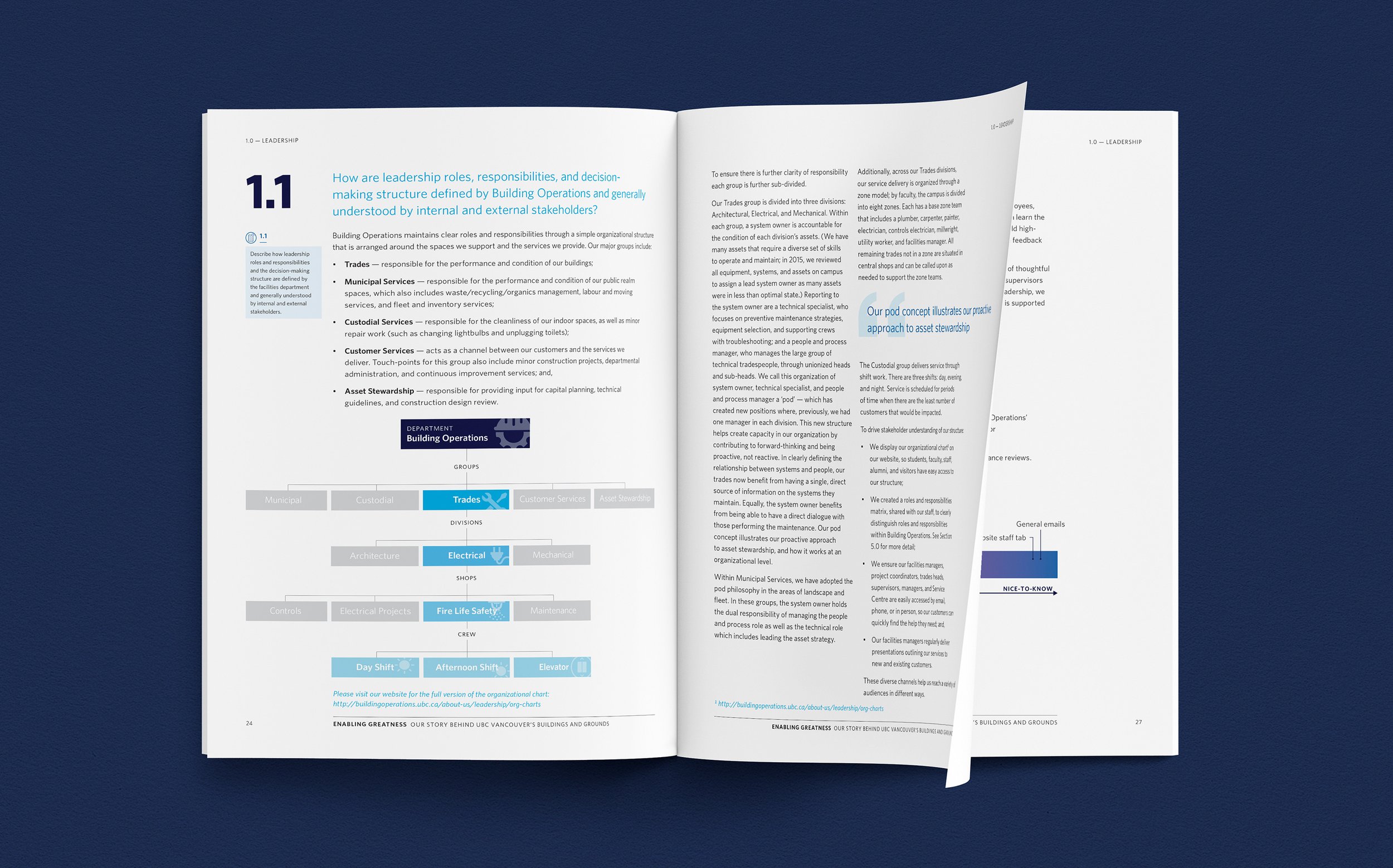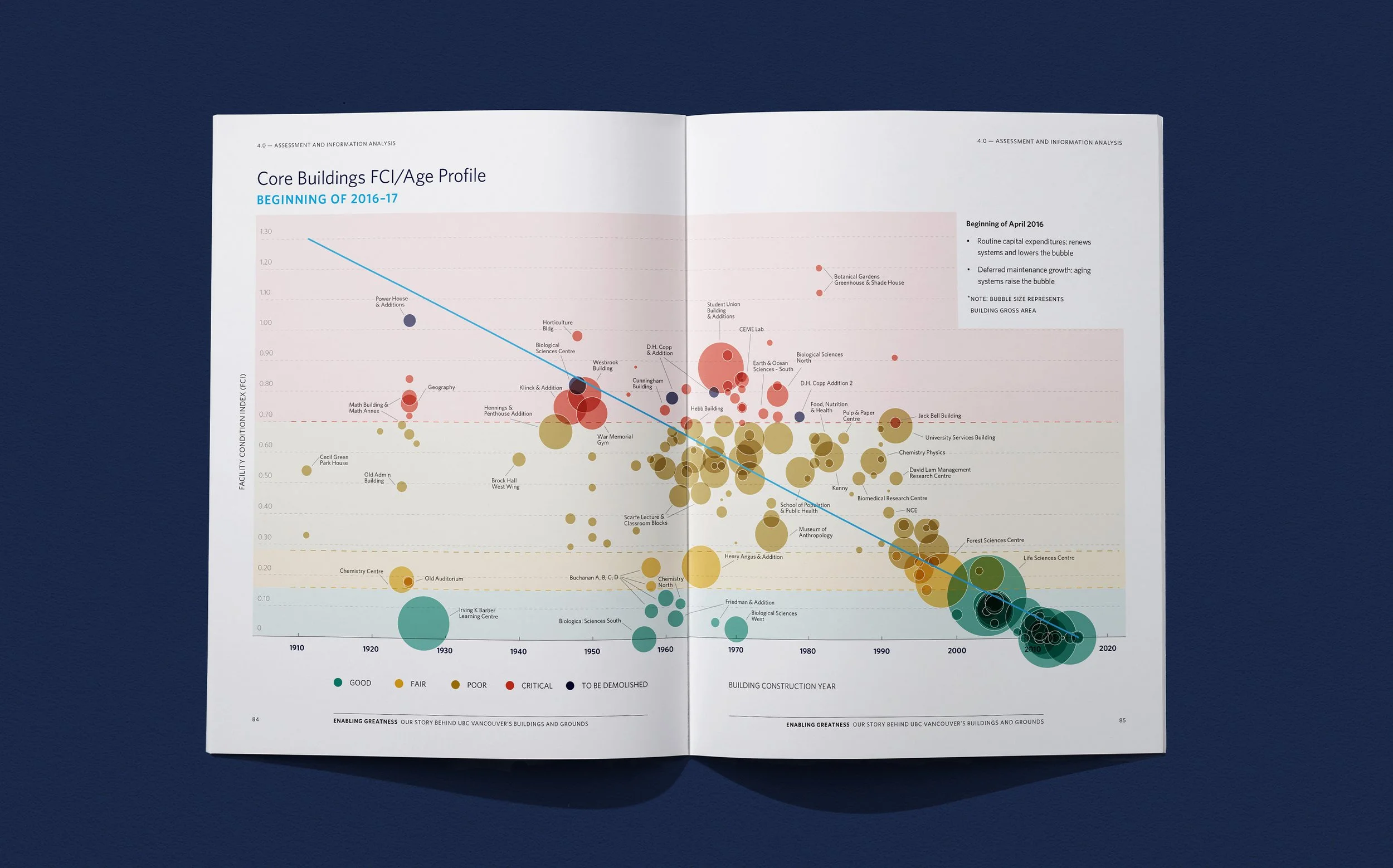 UBC Building Operations participated in the APPA FMEP (Facilities Management Evaluation Program) evaluation process for facilities management excellence. RDC designed and assembled the 170-page book Enabling Greatness: Our Story Behind UBC Vancouver’s Buildings and Grounds, which served a dual purpose as both a formal self-evaluation, as well as a comprehensive overview of Building Operations, its activities, current performance, and future plans.